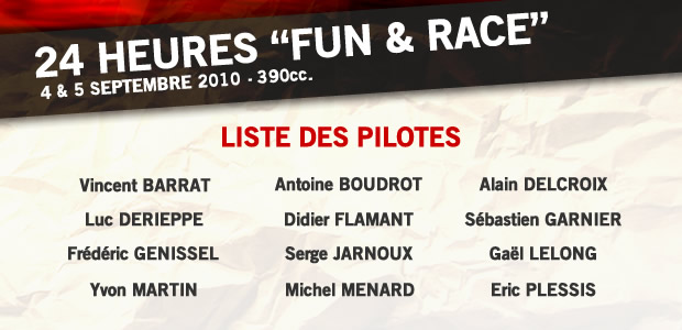 A moins de 3 mois de l’évènement KFF, voici enfin la liste des 12 pilotes engagés pour l’endurance de 24 heures « Fun & Race » les 4 et 5 Septembre !
